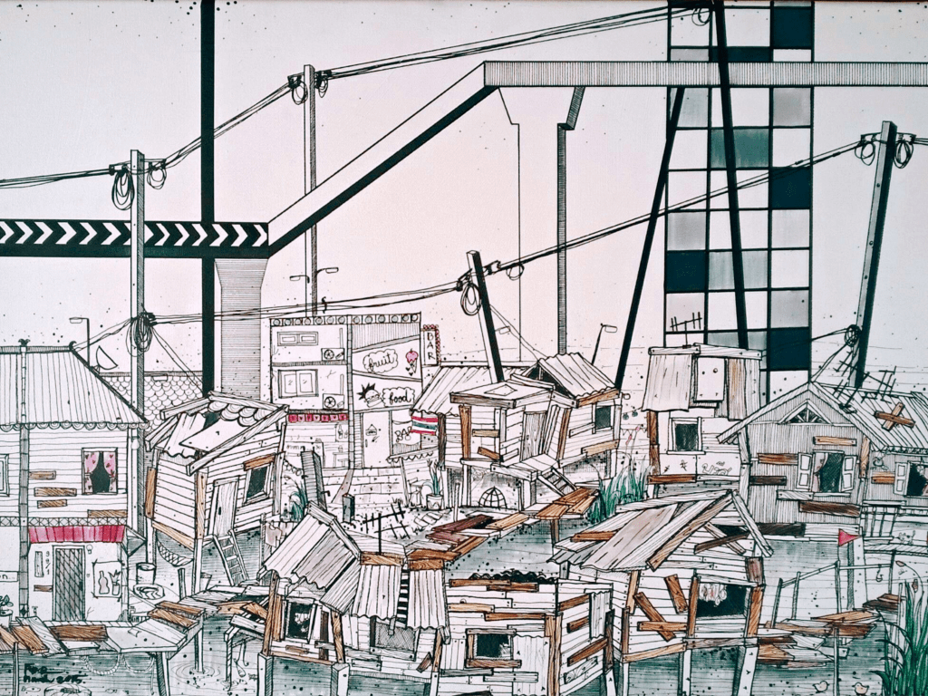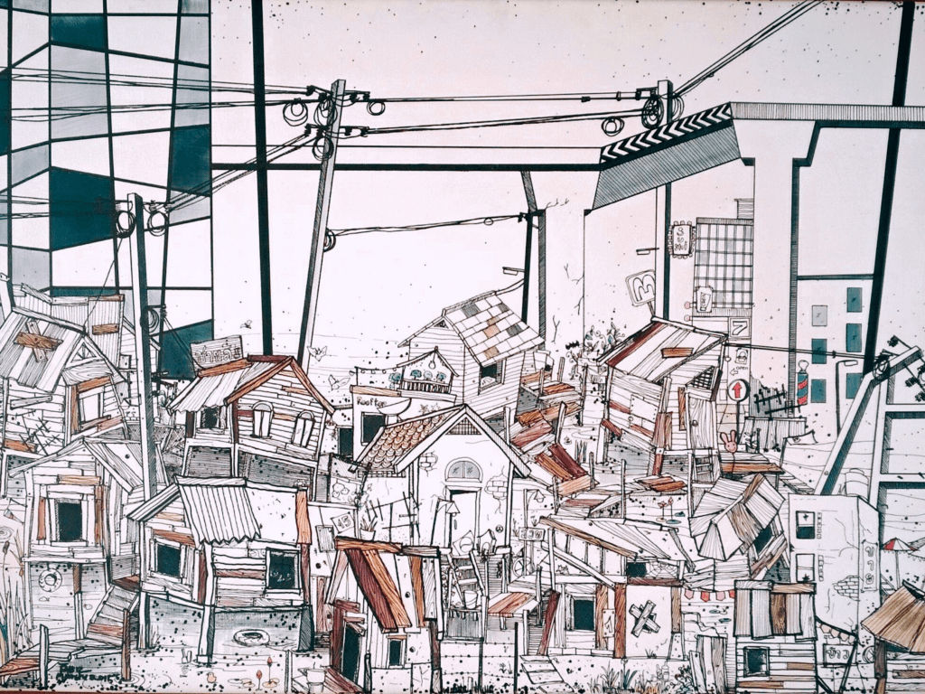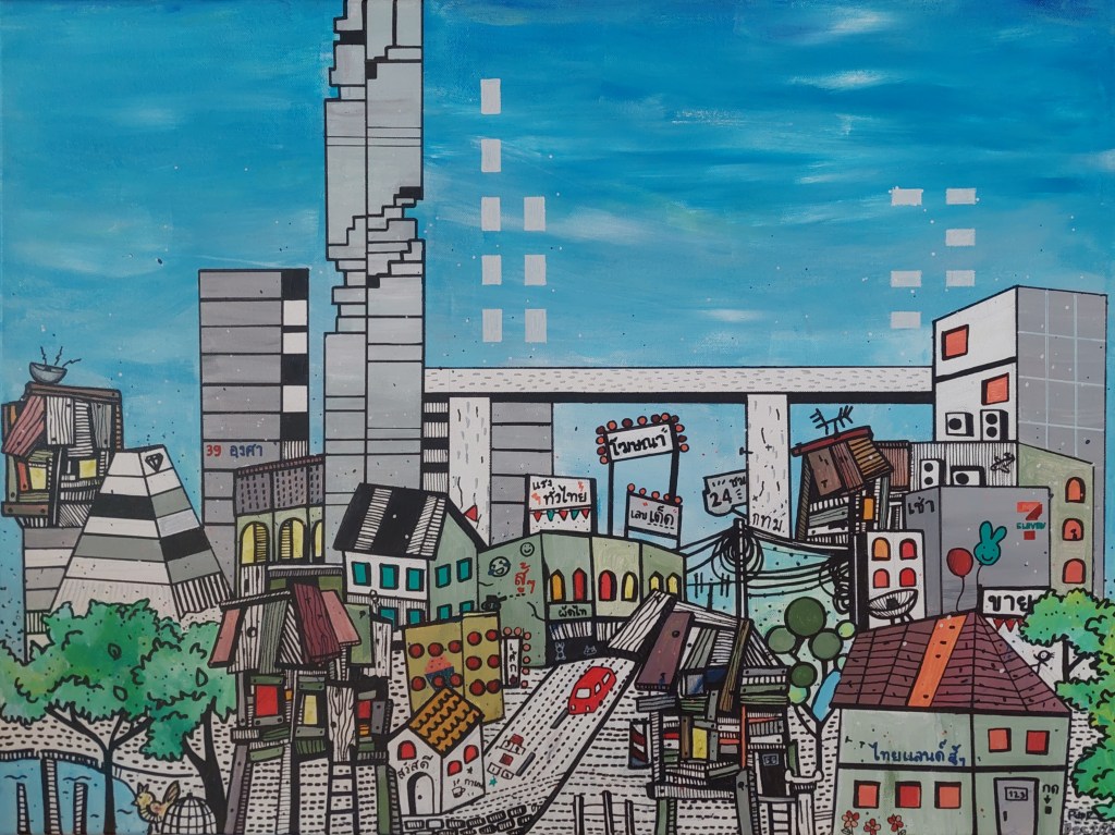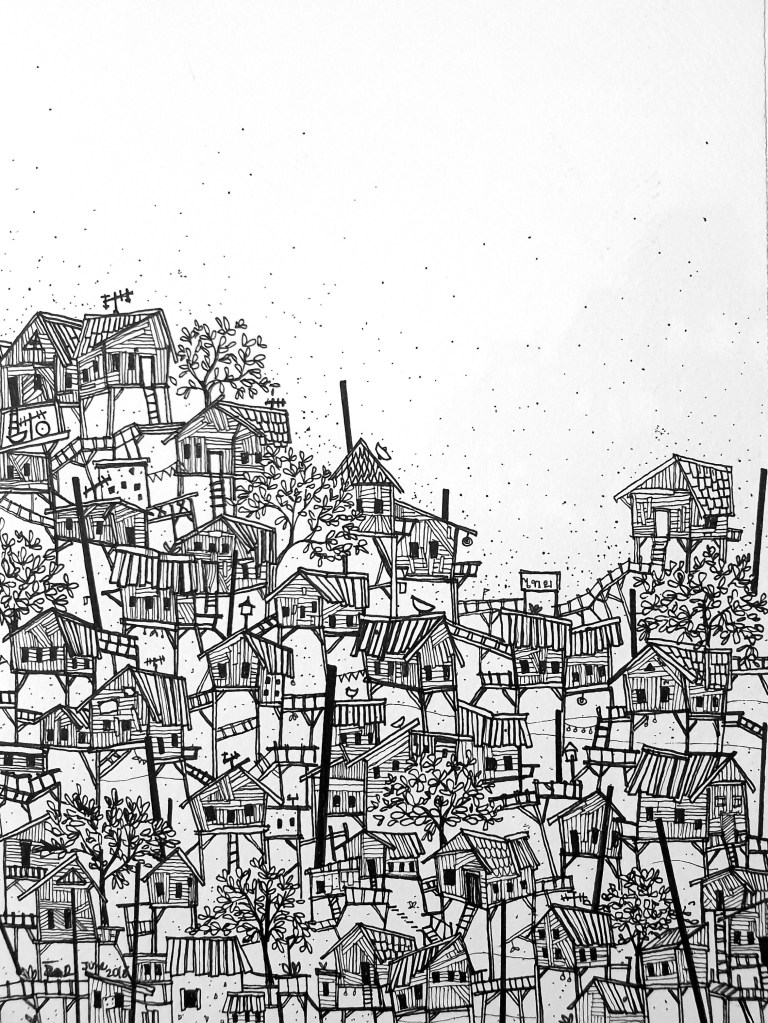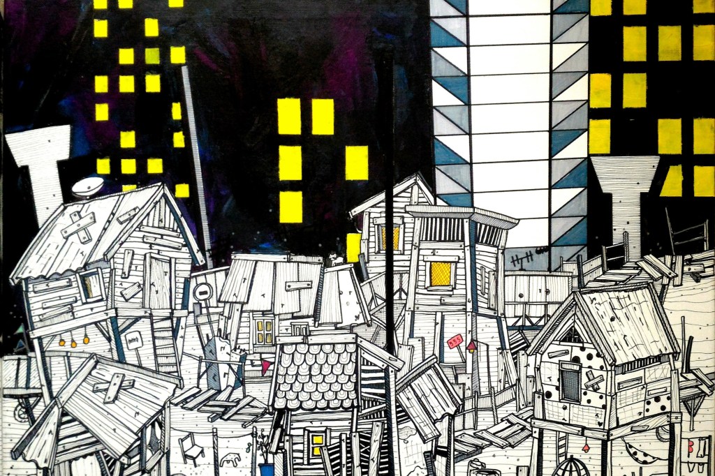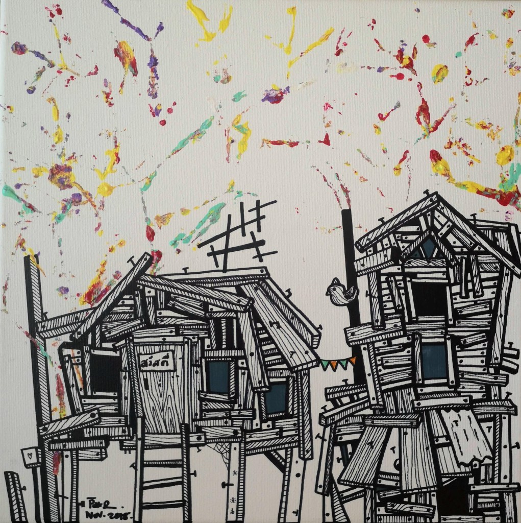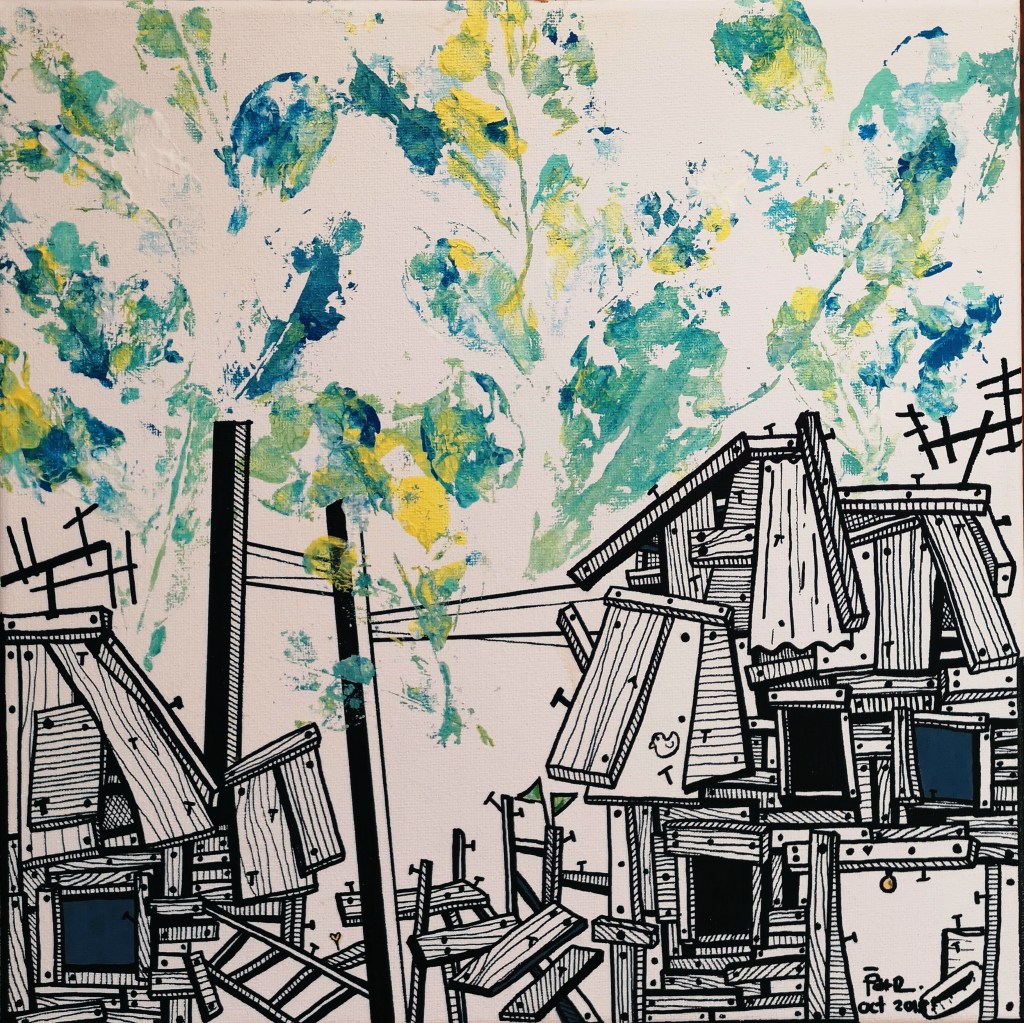 HOUSINGS Acrylic and Ink on Canvas Housings Mirror City Housings Housing I Housing II City – Lives – Stories Chok – Dee Tree House Duo NIGHT CITY I NICHT CITY II NICHT CITY III Triplets Duo Canvas Duo