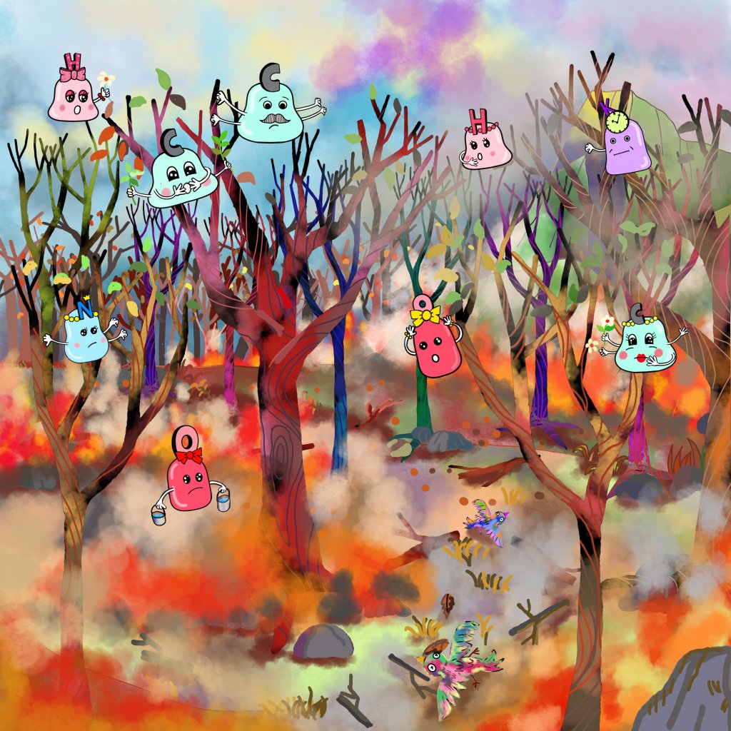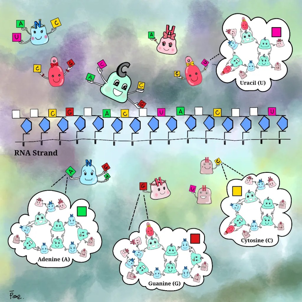 To create these illustrations, I had also to do some research on SCIENCE, to understand the complication part of the atoms, different molecules, DNA, mRNA. It was so much fun to get to learn while working and to be aable to us some old knowledge about science that I learned in school