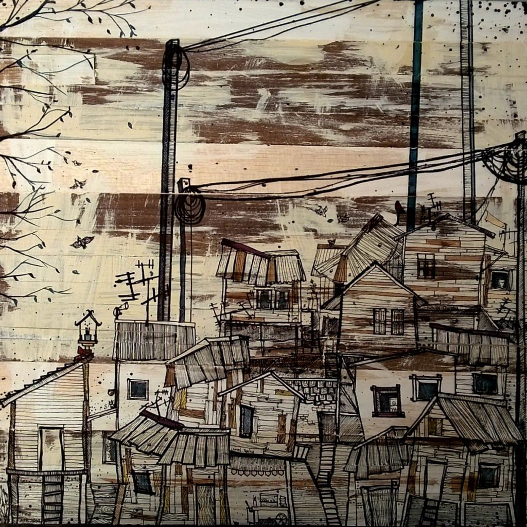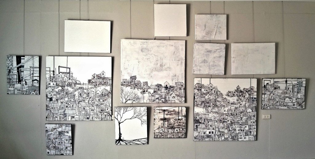 This exhibition started from the concept “1 Like / Share = 1 House Drawn” it was kind of the work that I wanted to play with social media. All houses in these paintings have their own onwers and meanings.
